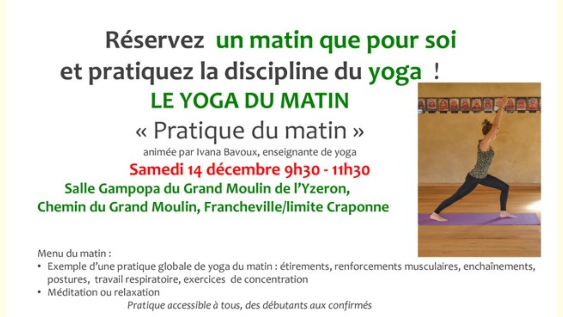 Déjà organisé plusieurs fois cette année, je vous invite pour démarrer votre week-end avec un yoga plus dynamique et tonifiant. Toujours en respectant votre corps, une pratique simple du hatha yoga qui va durer 2 heures (9h30 - 11h30). La pratique sereine et dynamique pour développer votre souplesse, pour réveiller vos muscles mais aussi les sens et […]